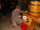 | Vient l'heure fatidique du filtrage ou filtration (selon les régions et les humeurs). Le premier jus est rebalancé (délicatement) dans la cuve jusqu'à obtention d'un moût le plus limpide possible. Belle couleur caramel non ? | |