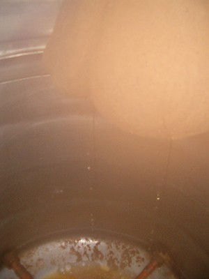 | Admirons enfin ce qu'il reste des chaussettes de houblon... Et pratiquement aucun déchet au fond de la cuve ! Chouette, il nous reste à ensemencer, et attendre... attendre... attendre... Rendez vous dans qq semaines ! Un grand bravo à Christian pour sa réalisation de la pico. Un hommage à Maître JeanGab pour sa conception. Un grand merci à Christian pour m'avoir permis de vivre ce grand moment de brassage amateur, j'en suis d'autant plus heureux de t'avoir refilé ce virus là ! j'ai plus qu'à déménager pour une maison avec cave et garage et retrousser les manches... | |